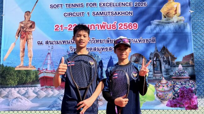 วันนี้ ( 22 ก.พ.69 ) ที่ สนามเทนนิสมหาวิทยาลัยการกีฬาแห่งชาติ วิทยาเขตสมุทรสาคร วันที่สองของการแข่งขันกีฬา”ซอฟท์เทนนิสเพื่อความเป็นเลิศ” ครั้งที่ 1 ประจำปี 2569 SOFT TENNIS FOR EXCELLENCE 2026 CERCUIT 1 SAMUTSAKHON โดยความร่วมมือของสมาคมกีฬาซอฟท์เทนนิสแห่งประเทศไทย , สมาคมกีฬาแห่งจังหวัดสมุทรสาคร และชมรมกีฬาซอฟท์เทนนิสจังหวัดสมุทรสาคร ระหว่างวันที่ 21 – 22 ก.พ.69 โดยมีผลการแข่งขันที่น่าสนใจ ดังนี้